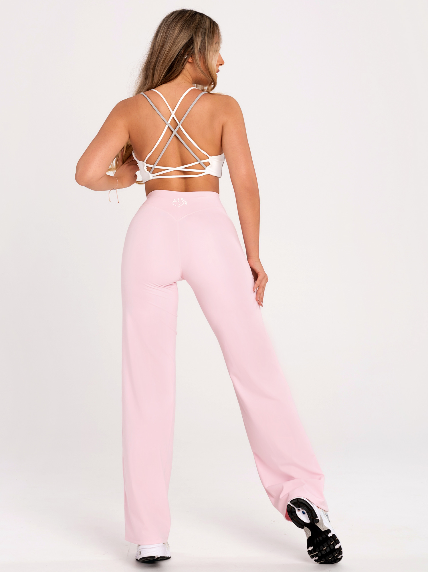 Tyto růžové sportovní legíny s širokými nohavicemi rovného střihu jsou ideální volbou na trénink i každodenní aktivity. Jsou vyrobeny z měkké, pružné a prodyšné tkaniny, která zajišťuje volnost pohybu a díky svému střihu, který siluetu prodlužuje, dokonale k tělu přiléhají. Tkanina je šetrná k pokožce a neprosvítá ani při intenzivnějším cvičení. Vhodné na jógu, pilates, do posilovny nebo na procházku – legíny budou vaší novou oblíbenou volbou pro každodenní pohodlí a sebevědomí.