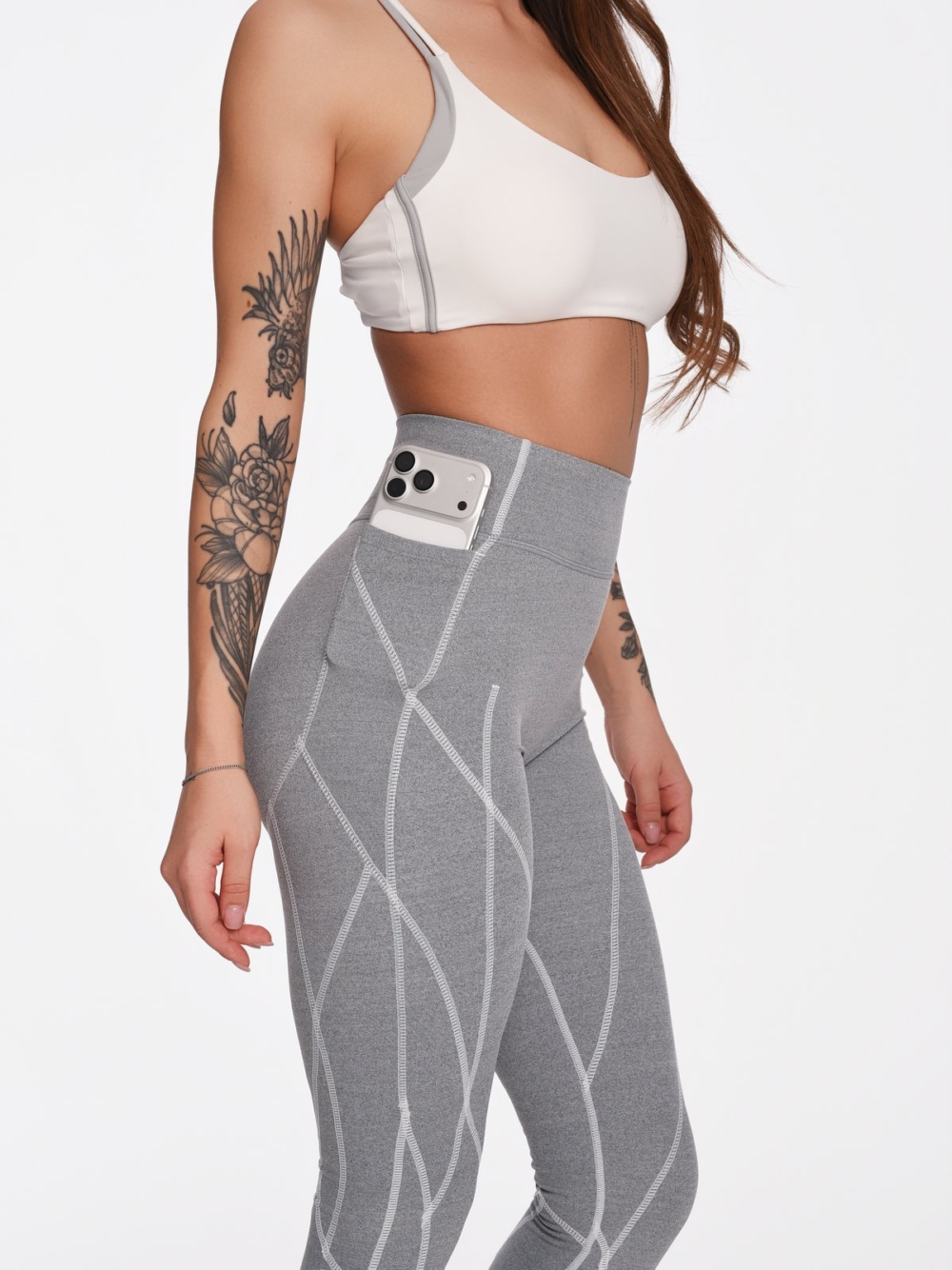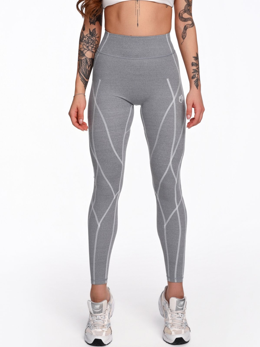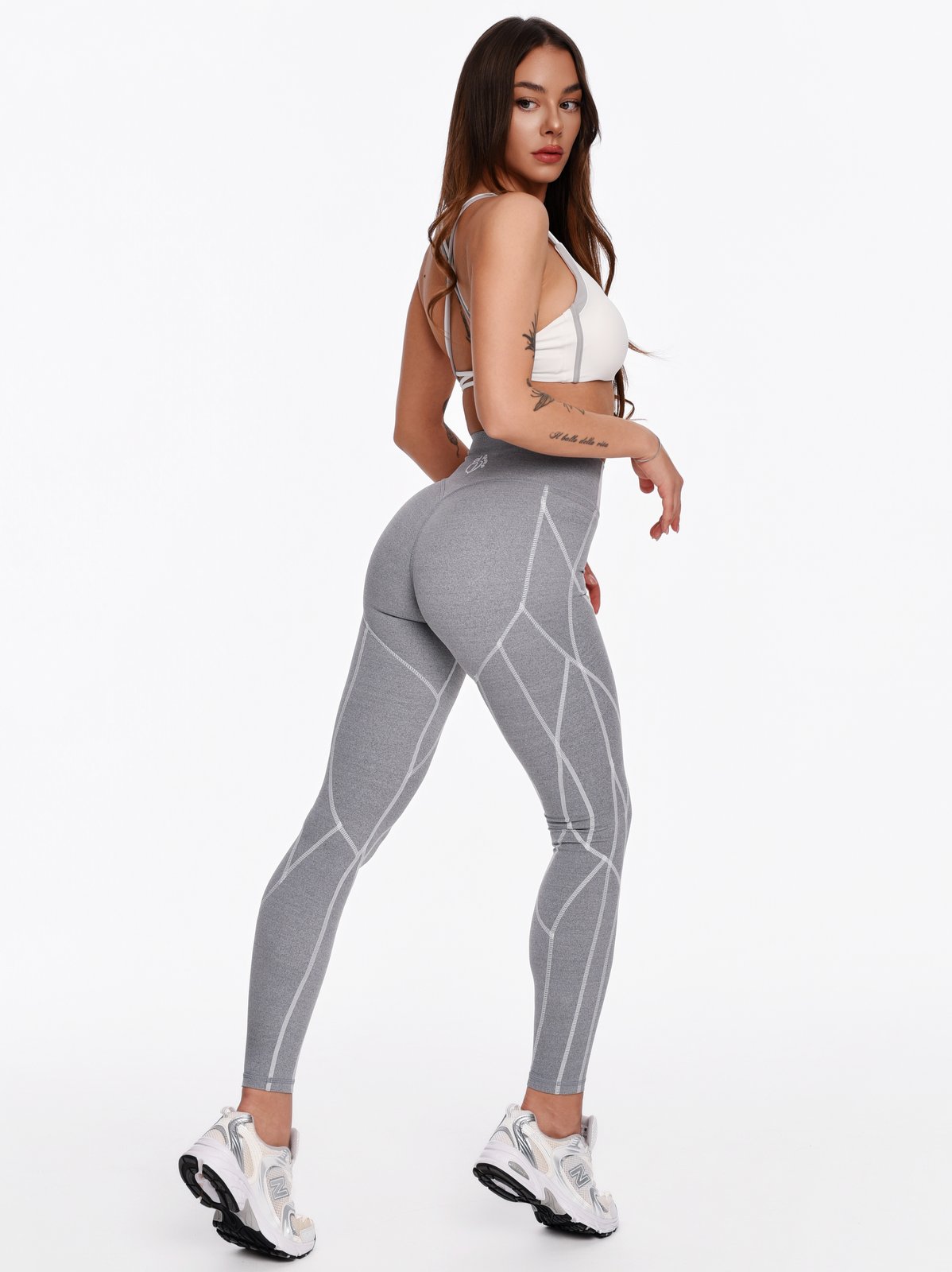 Сив дамски клин с ефектни шевове, които следват мускулите на тялото , модел с който няма как да останете незабелязани. Клинът е създаден да подчертава фигурата, да оформя силуета и да осигурява максимален комфорт както по време на тренировка, така и в ежедневието. Ефектните шевове следват естествените линии и мускулите на тялото, като визуално издължават фигурата и подчертават извивките.