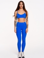 Дамски спортен комплект Peach Pump, състоящ се от бюстие и клин в наситено син цвят , перфектен избор за стилна спортна визия през всеки сезон. Сетът е изработен от мека, еластична и комфортна материя, която не задържа влагата в тялото и осигурява лекота, удобство и свобода на движение. Бюстието разполага с push-up подплънки, които подчертават бюста и оформят красив силует, както и с регулиращи се презрамки за индивидуално напасване. Клинът е с висока талия, която прибира и оформя, създавайки усещане за стегнат и изваян силует. Ефектните 3D шевове на бюстието и клина визуално оформят тялото, издължават фигурата и създават оптическа илюзия за по-малка талия и фигура тип пясъчен часовник.